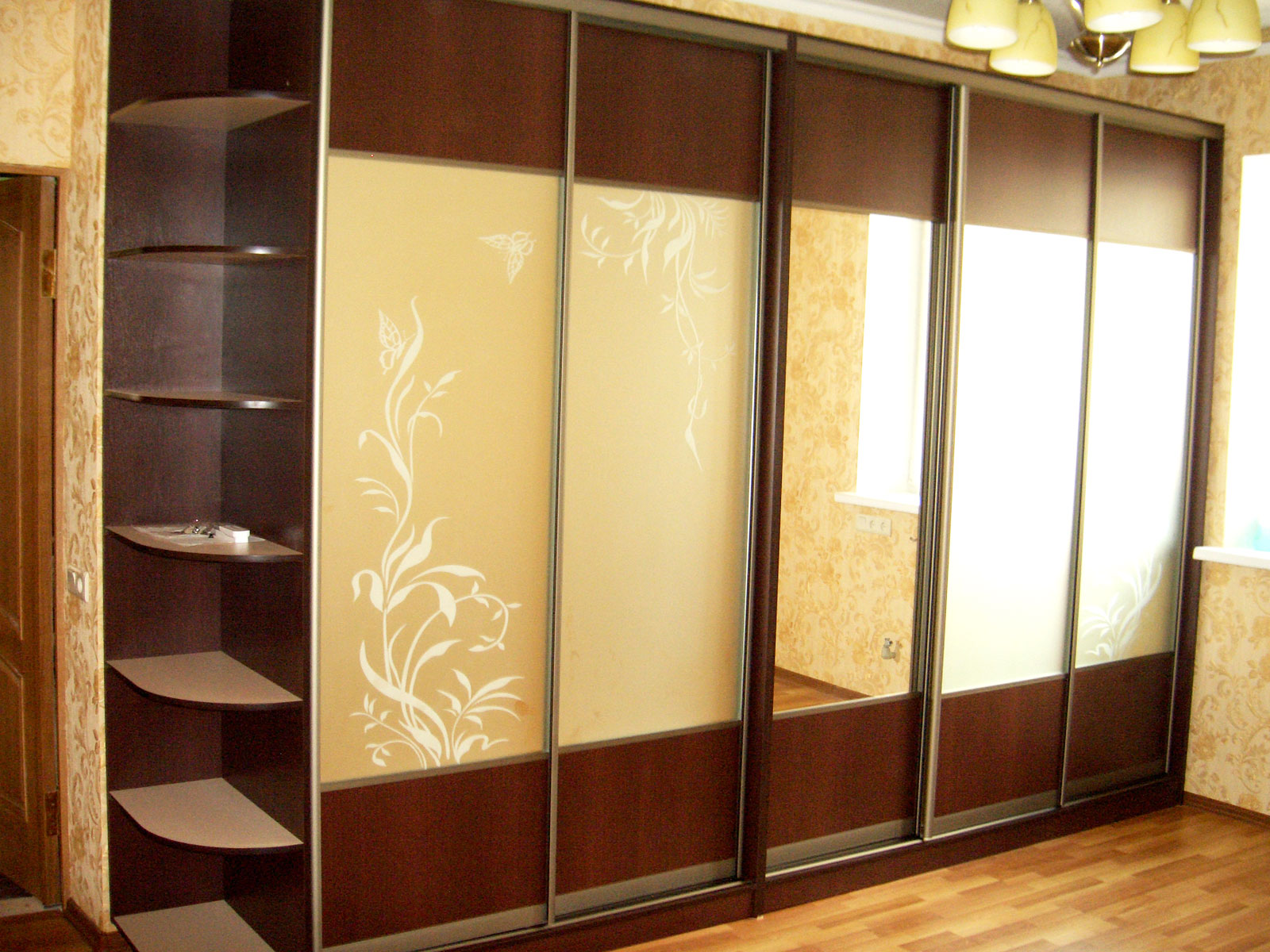 Встроенные шкаф-купе в зале. Длина - 3,7м. Глубина - 60см, Высота — 2,5мДСП — Венге темный и венге светлый (Кронольвов), 16мм
