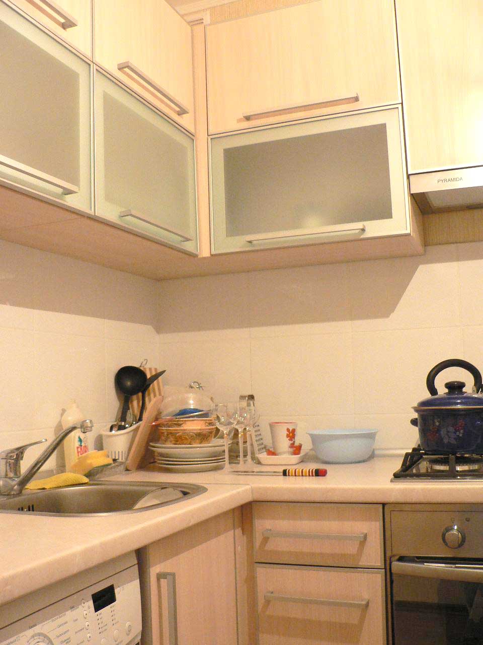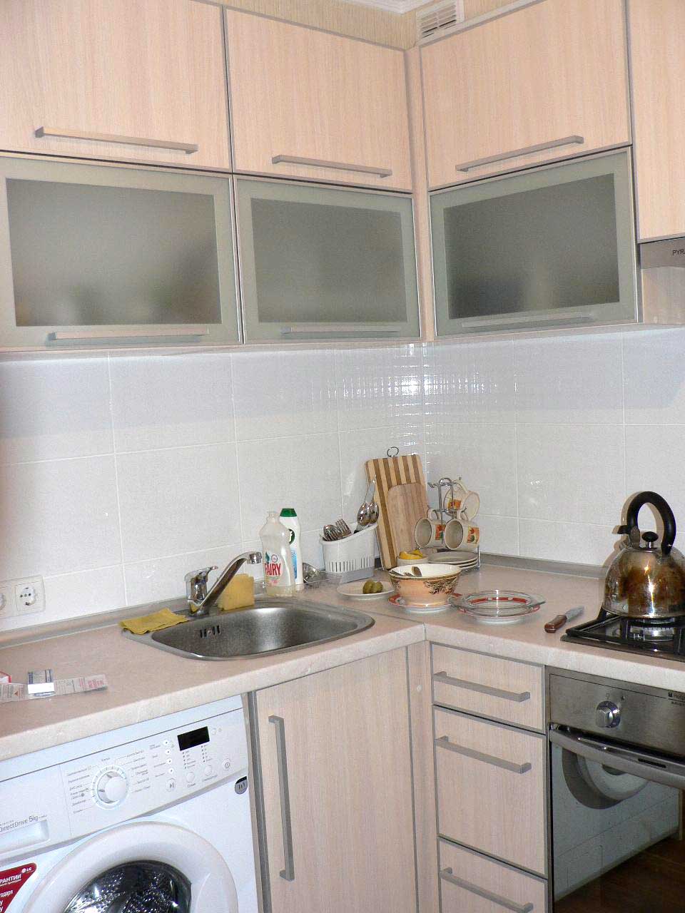 Г - образная, расположена в 5-этажном доме. Размер по первой стене -
