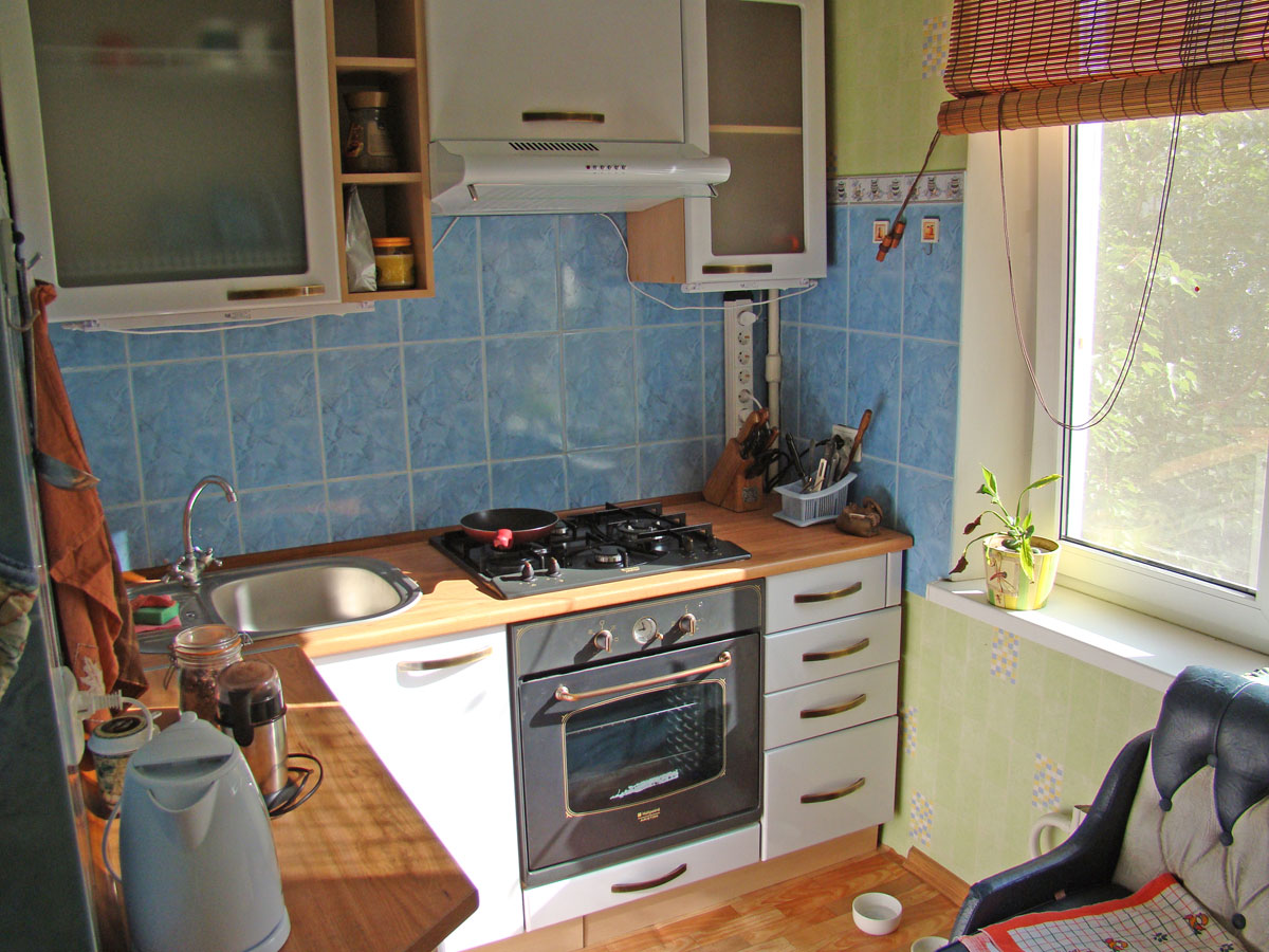 Г - образная, расположена в 9-этажном доме - «чешка». Размер по первой стене -