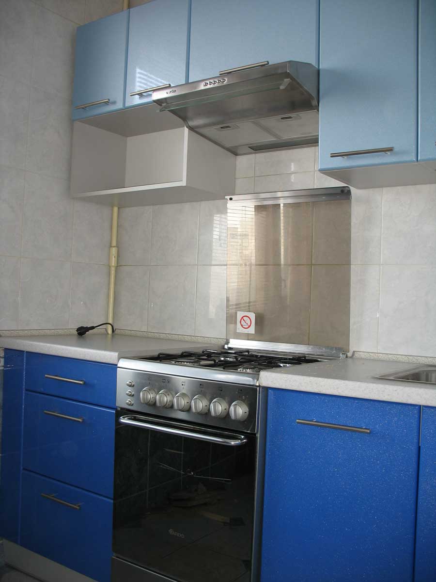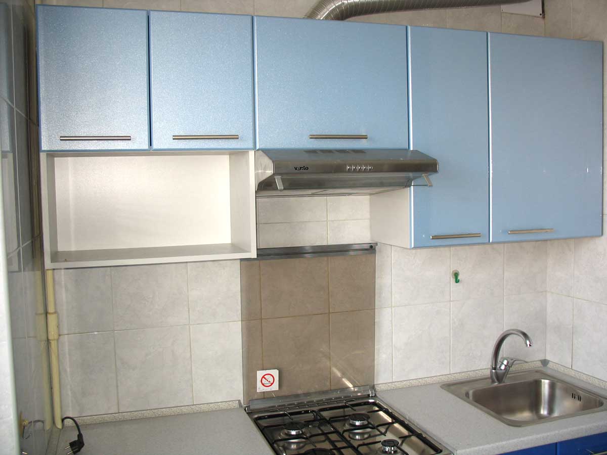 Кухня двухлинейная, расположена в 9-этажном доме - «чешка» (3к кв). Размер по первой стене - 2,2 м, по второй - 1,8 м.