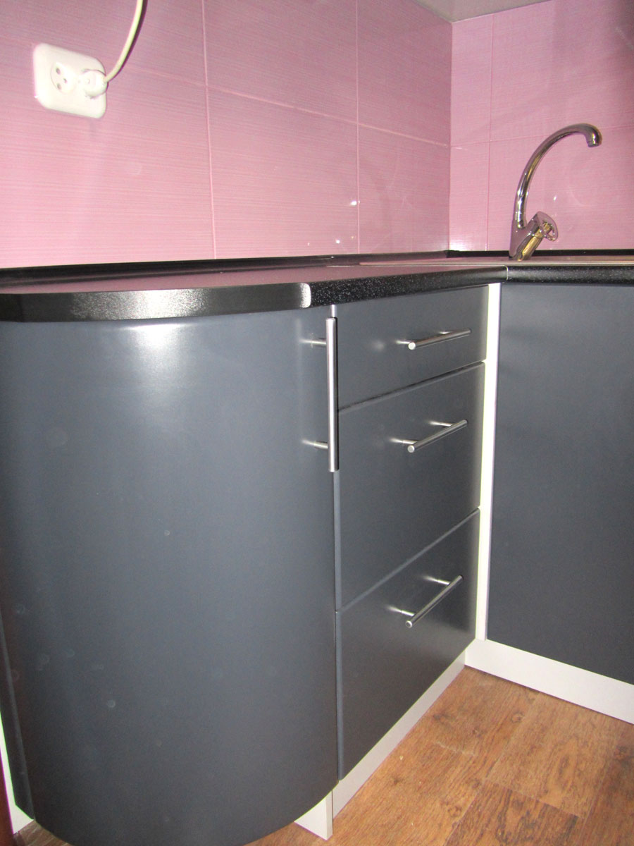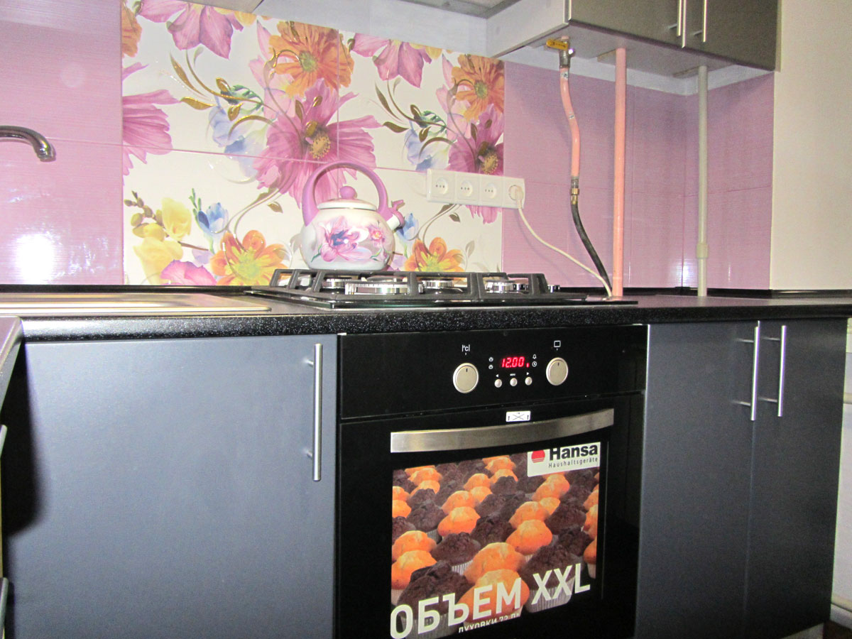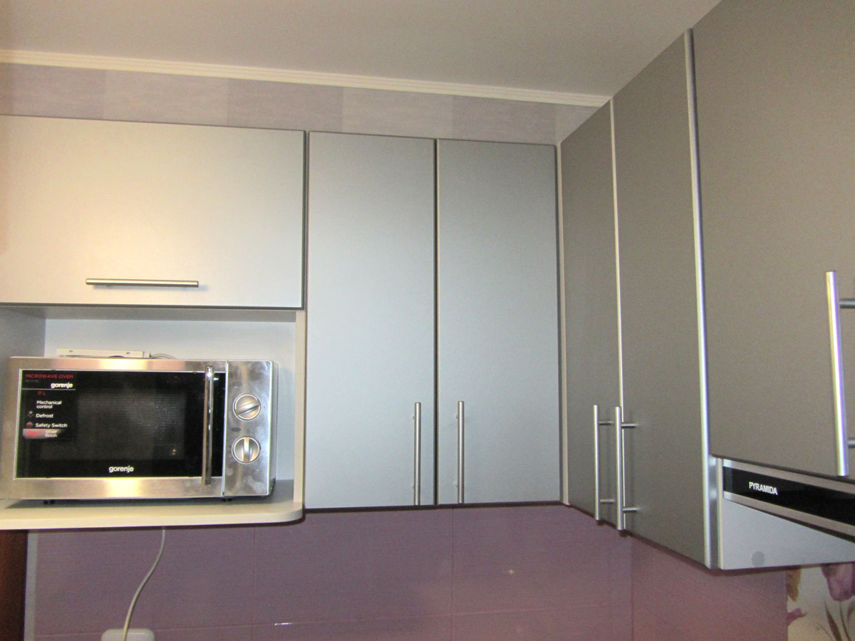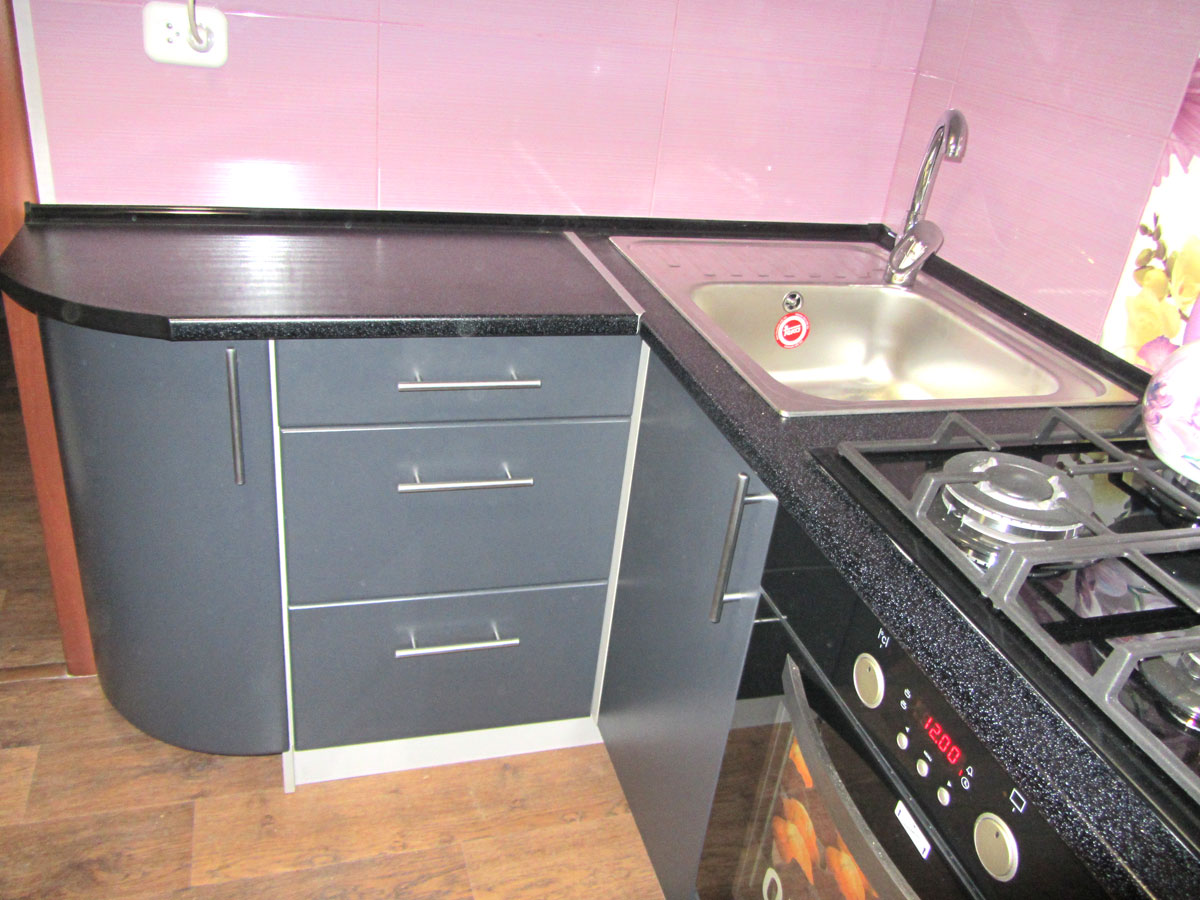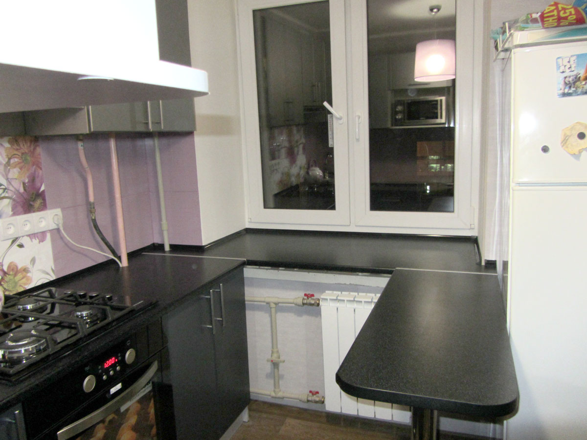 Кухня П-образная с барной стойкой, расположена в 9 этажном доме. Размер по 1й стене - 1,5 м,, по 2й стене - 2 м,