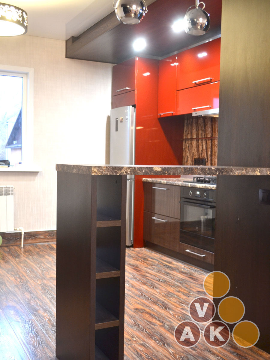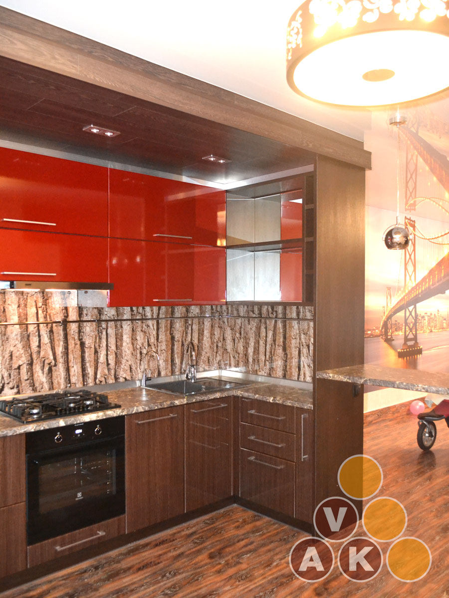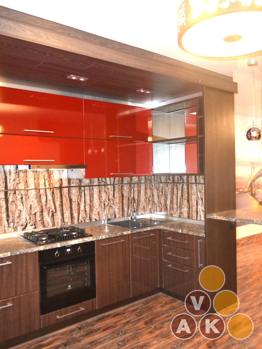 Фасады: них - мдф крашеный, 16 мм, низ - постформинг.